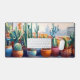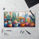 A captivating addition to any workspace or gaming area. Measuring 31.5" x 15.5", this desk mat features a vibrant boho painting showcasing colorful clay pots adorned with various types of cactus plants.