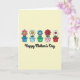 This greeting card features a pale yellow background with a neat row of five potted flowers centered across the front, like a small garden lined up for someone special ❤️. Each flower has its own look—soft pink, bright white, deep blue, and rich red petals—each with a contrasting round center that draws your eye. The pots beneath them vary in gentle pastel shades such as sky blue, green, and rosy tones, and a few show tiny flower motifs or scattered dots that feel like a friendly little wink. The balanced spacing and repeated shapes give the scene a calm, caring rhythm, like a thoughtful arrangement made with someone in mind. Below the flowers, the words “Happy Mother’s Day” sit prominently in black lettering, centered and easy to read against the light background 🌼. Dark outlines define the petals, leaves, and pots, keeping everything crisp and clear while letting the soft colors stay in charge. The five pots form a straight horizontal line across the middle, with the text placed directly underneath.