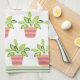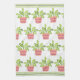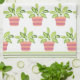 Lovely tea towel with potted greenery plants trimmed in stripes.