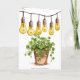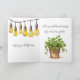 Cute garden plant with string lights on the front of this customizable greeting card. Inside the card find the same elements with the garden lights in the upper left and the cute potted ivy plant in the bottom right. Fully personalize these cards with your own greeting, messages and add your signature. Great for plant lovers and gardeners.