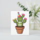 Generativecontent design. I like cactus so I thought about making a cactus birthday design. I wanted to have the plant in a clay pot and with a birthday hat on top of it. I made the text Happy 45th birthday editable. I wanted to make the text look like it was a face on the cactus. I put the text wishing you luck in your 45h year on the back of the product.