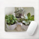 Potted Succulents in White with Seashell Mouse Pad
