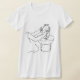 The material is a great quality that is hard to find with most tee shirts. Fabric was not see-through or thin at all, but was also very soft and comfortable. The shirt description states that it runs a little small, so I sized up one size for a perfect fit! I would definitely buy this type of tee shirt again because I love the fit and high quality fabric that I cannot find anywhere else. The printing was perfect and just as pictured. Loved the cute quote and really enjoy the tee in both the quality and design. I love quirky typography designs and funny quotes and I am extremely pleased with the overall quality and value I get at Zazzle!