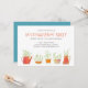 Plant illustrations in festive watercolor pots, with whimsical text and a turquoise speckled pattern on the reverse.