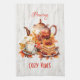 Bring a touch of warmth to your kitchen with this charming 'Pouring Cozy Vibes' kitchen towel. Featuring a beautiful teapot surrounded by autumn leaves, a cozy cup of coffee, and a plate of delicious pancakes, this towel is perfect for embracing the cozy vibes of fall. With its rustic wood background and vibrant fall colors, it's a delightful addition to your seasonal kitchen decor or as a thoughtful Thanksgiving gift.