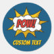 Word POW! over a cloud, inside an explosion burst. Used mostly for punch hitting. Comic sound effect. Custom background color. Custom text.
