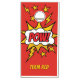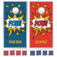 Word POW! over a cloud, inside an explosion burst. Used mostly for punch hitting. Comic sound effect. Custom background color. Custom text for each team.