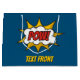 Word POW! over a cloud, inside an explosion burst. Used mostly for punch hitting. Comic sound effect. Custom background color. Custom text on both sides.
