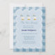 Three bow-tied geese and a nest that's growing — this powder blue gingham baby shower invitation is as charming as the occasion it announces. The classic buffalo check background has the soft, textural quality of woven linen, while the scalloped frame and illustrated geese give it a storybook warmth that feels fresh rather than fussy. Simply customize with the mom-to-be's name, date, time, location, and RSVP details and your invitation is ready to send. A natural fit for baby boy showers, coastal farmhouse celebrations, and anyone who loves a little whimsy done right. Pair with the matching RSVP card, details card, wrapping paper, tissue paper, gift bag, cocktail napkins, and paper plates for a fully coordinated baby shower from the invitation to the gift table.