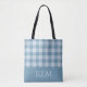 Powder Blue Gingham Monogram Custom Name Tote Bag