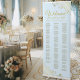 This beautiful retractable banner is a wonderful way to welcome guests to your wedding reception, while making it easy for them to find their seats. It features a simple yet beautiful design with elegant script calligraphy titles, gold text, and delicate golden curls and swirls in the corner, all on a light powder blue colored background. The chart is designed in an alphabetical format making it simple for your guests to find their names, and can accommodate up to 250 names. Compact, and easy to transport, this seating chart is a wonderful option for destination weddings where space is a consideration.