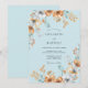 This design features a soft powder blue backdrop adorned with lush watercolor arrangements of ochre and amber blossoms. Delicate white anemones and golden yellow roses create a romantic and airy atmosphere. The painterly teal foliage adds a touch of nature-inspired elegance.