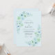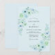 This design features a soft wash of light blue, creating a tranquil atmosphere for a spring event. Delicate watercolor anemones and lush sage green foliage create an airy arrangement. The palette of powder blue and mint green evokes a sense of serenity and natural beauty. These painterly botanical elements are perfect for an elegant seasonal event.
