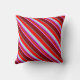 This throw pillow design features a powder blue, red, gray, maroon, and fuchsia colored striped pattern.