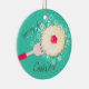 Scalloped jam-filled cookie with powdered sugar, spatula and snowflakes splattered background on this custom-color Christmas ornament for your favorite baker, pastry chef or sweets lover.