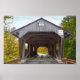 "Power House Covered Bridge" by Catherine Sherman. The Power House Covered Bridge is shown here situated among bright Autumn foliage. Also known as the School Street Covered Bridge, the bridge, built in 1872, crosses the Gihon River off State Route 100C in Johnson, Vermont. It was listed on the National Register of Historic Places in 1974. The bridge's name is from a now obsolete hydroelectric generating station just upstream from it, but electrical wires still run near the bridge. The builder of this bridge of Queen post truss design is unknown. In 1960, minor repairs were conducted to the abutments, approaches and floor. In 1995, it was recommended to reinforce the deck due to the large number of trucks using the road as a short cut. Steel I beams were installed underneath. In 2000, the bridge was destroyed by a heavy snow load. The roof collapsed and the side walls fell outward into the river below. Because of the installation of the steel I beams, the deck was self-supporting and actually survived. Guardrails were put up on the sides of the deck to keep the bridge open while its fate was decided. In 2002, the bridge was reconstructed and reopened on June 29, 2002. Trucks are no longer allowed on this one-lane bridge, one of the many charming one-lane bridges in New England.
