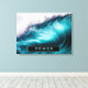 A photograph of a vivid turquoise ocean wave breaking in a perfect curl is the backdrop of this canvas The word power perfectly describes the forces of nature and the constant ebb and flow of our oceans. You can change the font, color, and size as well as the inspirational word.