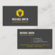 A modern, minimalist and professional business card with a logo of a silhouette of a power plug over a hexagon yellow shape. Perfect for electricians and those providing electrical wiring and lighting fixtures installation services. Personalize with your business information in the text templates provided.