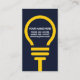 An all dark blue cover is accentuated by an oversize yellow power plug which houses your job title "electrician" at the top. You can change this to suit your own service needs. This power plug goes on to power up a light bulb at the back of the card.