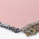 A quality printed throw has its advantages. This is a much finer weave throw than its loopier cousins, and though lighter, it is worth the investment for custom room accessorizing. The back is much prettier than the typical brown, and the fringe on the long sides very vivid, the selvage nicely done. Before photographing, I washed the throw in cold water, delicate, with a thicker woven throw the same size. On tumble dry low, this throw was dry in half the time as the other. This is a very practical quality if you use throws for furniture covers or to wrap up in frequently. The sleekness of the fabric makes it a great layer for accenting or protecting without the feeling of sitting on too much stuff. Perfect for napping or when you feel a light chill coming on. The color printing is beautiful and on this fabric, matched the design and color of my Photoshop image. This is an advantage for blending room fabrics and colors. The fringe on the short sides prints the colors from the design image and therefore varies from the side fringe. I streaked a white fractal line through the plaid pattern to give the illusion of weaving. This printed as crisp as an illusory thread, and put some white in the short side fringe, showing another advantage of print vs loomed- for artistic purposes, line lines, detail, and color integrity can be planned and preserved. My loomed throws have color limitations and more of a needlepoint texture. Print throws reproduce an exact image. The throw felt a little stiff straight out of the package, but this went away in the first delicate wash. Of course I searched the wash water for ink or bleeding and there was none.