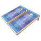 Natural Wood Cornhole Set, Royal Blue and Yellow bags