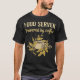 My 11 yo wore adult XL (5’7” 165#). The 8yo is small framed. She wore adult small and tied it in the back. Grandma wore adult large with long sleeve shirt underneath. Tall girl adult medium. Dark haired male adult large. Good quality dark Heather gray, Gildan brand shirt. -it was next up from basic choice and cost about $20 per shirt. Not too thick or thin. Washed and dried well, no major shrinkage. Not see-through. Can wear a bra under it fine. Screen print is just as shown and well done, front and back.
