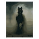 A majestic black stallion charges forward through a cloud of dust, symbolizing freedom and raw power. This dynamic silhouette contrasts beautifully with a muted background, creating a bold and captivating scene for art lovers and equestrian enthusiasts alike.