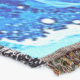 A quality printed throw has its advantages. This is a much finer weave throw than its loopier cousins, and though lighter, it is worth the investment for custom room accessorizing. The back is much prettier than the typical brown, and the fringe on the long sides very vivid, the selvage nicely done. Before photographing, I washed the throw in cold water, delicate, with a thicker woven throw the same size. On tumble dry low, this throw was dry in half the time as the other. This is a very practical quality if you use throws for furniture covers or to wrap up in frequently. The sleekness of the fabric makes it a great layer for accenting or protecting without the feeling of sitting on too much stuff. Perfect for napping or when you feel a light chill coming on. The color printing is beautiful and on this fabric, matched the design and color of my Photoshop image. This is an advantage for blending room fabrics and colors. The fringe on the short sides prints the colors from the design image and therefore varies from the side fringe. I streaked a white fractal line through the plaid pattern to give the illusion of weaving. This printed as crisp as an illusory thread, and put some white in the short side fringe, showing another advantage of print vs loomed- for artistic purposes, line lines, detail, and color integrity can be planned and preserved. My loomed throws have color limitations and more of a needlepoint texture. Print throws reproduce an exact image. The throw felt a little stiff straight out of the package, but this went away in the first delicate wash. Of course I searched the wash water for ink or bleeding and there was none.