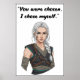 A bold quote poster inspired by Powerless, featuring the line “You were chosen. I chose myself.”