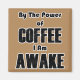 By the power of coffee I am awake! Funny text design about your love for always helpful coffee.