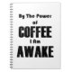 By the power of coffee I am awake! Funny text design about your love for always helpful coffee.