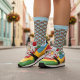 I love these Mona Lisa Christmas Socks! They are soft and very comfortable. The print looks great, on all sides including the most stretched area around my calf.