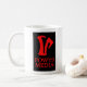 Official Powys Media Mug with two Red Logos on Black Background