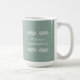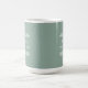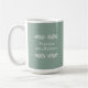 This uber sized 15 oz coffee mug features the expression, "Practice mindfulness," with a simple black text design on a dusty green background with ivory branches.