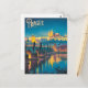 Experience the enchanting allure of Prague at night with this vintage-style postcard. Featuring the city's illuminated landmarks, such as the Charles Bridge and Prague Castle, the design evokes a magical ambiance under a starlit sky. Perfect for collectors of romantic European travel art and vintage cityscape keepsakes.