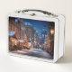 This is a standard metal lunchbox that appears to work just fine. We designed this box ourselves with an uploaded photo and custom text on the front and back. It looks absolutely beautiful except the front of the lunchbox is not centered like it shows in the photo. The print borders don't align with the inset flat part of the box where the preview photo online showed it perfectly centered in there. The back looks nice and centered though.
