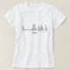This tshirt features a silhouette style line art illustration of the skyline of Prague.
