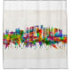 Elegant Watercolor Skyline of Prague, capital city of the Czech Republic, is bisected by the Vltava River. Nicknamed “the City of a Hundred Spires,”