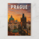 Bask in the timeless beauty of Prague, captured in this breathtaking postcard at golden hour. The image showcases the iconic Charles Bridge leading toward the magnificent Old Town Bridge Tower, framed by the domes of St. Francis of Assisi Church and the distant silhouette of Prague Castle. The sky glows with a gradient of orange, pink, and violet hues, reflecting off the tranquil Vltava River below — a scene that perfectly embodies the city’s romantic charm and medieval elegance.