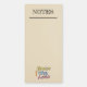 I love how this notepad turned out! I love the border around the muted middle that allows writing space and still shows how colorful and vibrant the artwork below is. I love that it can be customized to suit you and your needs. Such a fun alternative to plain lined notepads. The magnet is strong and holds well on the fridge without moving at all when I write on it. I will definitely order again! The printing is great! I wasn't sure if the middle would be light enough to clearly see my writing, but it absolutely is as you can see from the photos.