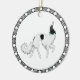 Lightweight, smooth, pure white ornament with nice sheen. Perfect size to be seen from across the room ... and to attract closer inspection! Price was great for ordering enough for the whole family! Clear, bold black design just as requested. Matches the order exactly. Just so nice!