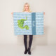 A cute fleece blanket for the nursery or little boy's room, this design features a colorful green prancing dinosaur with a blue and white modern chevron stripes pattern as a background. Edit the sample name shown with your desired name or other text.