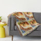 A quality printed throw has its advantages. This is a much finer weave throw than its loopier cousins, and though lighter, it is worth the investment for custom room accessorizing. The back is much prettier than the typical brown, and the fringe on the long sides very vivid, the selvage nicely done. Before photographing, I washed the throw in cold water, delicate, with a thicker woven throw the same size. On tumble dry low, this throw was dry in half the time as the other. This is a very practical quality if you use throws for furniture covers or to wrap up in frequently. The sleekness of the fabric makes it a great layer for accenting or protecting without the feeling of sitting on too much stuff. Perfect for napping or when you feel a light chill coming on. The color printing is beautiful and on this fabric, matched the design and color of my Photoshop image. This is an advantage for blending room fabrics and colors. The fringe on the short sides prints the colors from the design image and therefore varies from the side fringe. I streaked a white fractal line through the plaid pattern to give the illusion of weaving. This printed as crisp as an illusory thread, and put some white in the short side fringe, showing another advantage of print vs loomed- for artistic purposes, line lines, detail, and color integrity can be planned and preserved. My loomed throws have color limitations and more of a needlepoint texture. Print throws reproduce an exact image. The throw felt a little stiff straight out of the package, but this went away in the first delicate wash. Of course I searched the wash water for ink or bleeding and there was none.