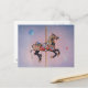 A dramatic black carousel horse with trappings in jewel tones of royal blue, deep red, purples and accented with carved pink rosettes. Feel free to personalize your purchase to make it your own.