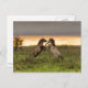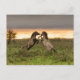 Postcard of two prancing wild Konik horses at sunset in the National Park Oostvaardersplassen in the Netherlands.