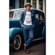 The shirt is good quality and fits just fine, but the colors of the printing are not as bright as in the sample photo. Not the best. The colors are a lot brighter in the sample photo; when I received the shirt they appeared faded. The red looks a little more pink and the blue is a lot lighter. N.B. I did not wash the shirt yet.