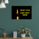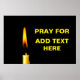 Burning wax candle of yellow color against black background and a text Pray For ADD TEXT HERE. You can add your own text. To express sympathies. Poster.