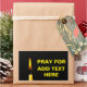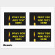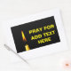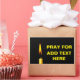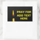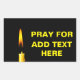 Burning wax candle of yellow color against black background and a text Pray For ADD TEXT HERE. You can add your own text. To express sympathies. Rectangle sticker