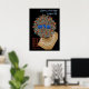 Striking original digital painting by Leslie Sigal Javorek. On a black background is a vibrantly colored globe representing Jerusalem; behind it is a copy of the 1917 document wherein Lord Balfor declared Palestine a sovereign nation and homeland for the Jewish people. The royal blue Hebrew text spells 'Shalom' (peace); text in lower left is an English translation of the top right Hebrew. #zazzlemade