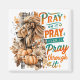 Peaceful, colorful design featuring a fall / autumn scene with majestic lion head, pumpkins and fall flowers. The colorful inspirational text reads: "Pray on it, pray over it, pray through it". This design is available on a wide variety of products.